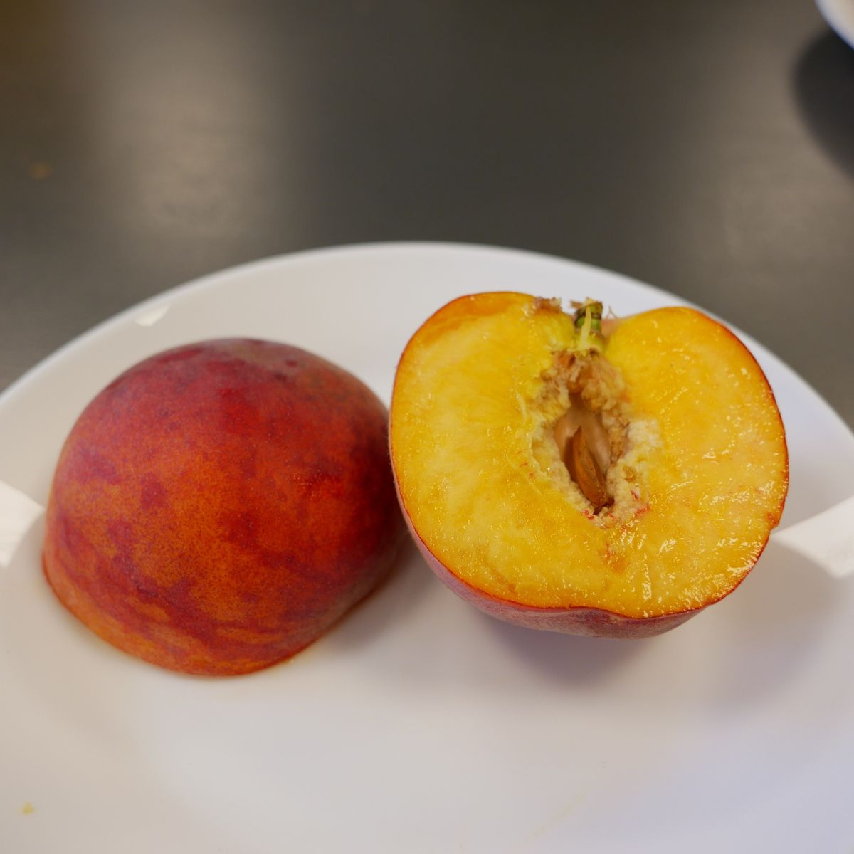 Plody jsou středně velké, lehce oválné, s jemným prohloubením u stopky. Slupka je žlutá, pokrytá atraktivním červeným líčkem, které dodává plodům mimořádně lákavý vzhled. V příznivých podmínkách mají plody intenzivní lesk a hladký povrch. Dužnina je světle žlutá, šťavnatá, aromatická a sladkokyselá, s jemnou konzistencí a příjemnou chutí. Pecka se od dužniny poměrně snadno odděluje, což usnadňuje konzumaci i zpracování. Plody dozrávají velmi brzy – často již v červnu nebo na začátku července, tedy výrazně dříve než většina běžných odrůd.