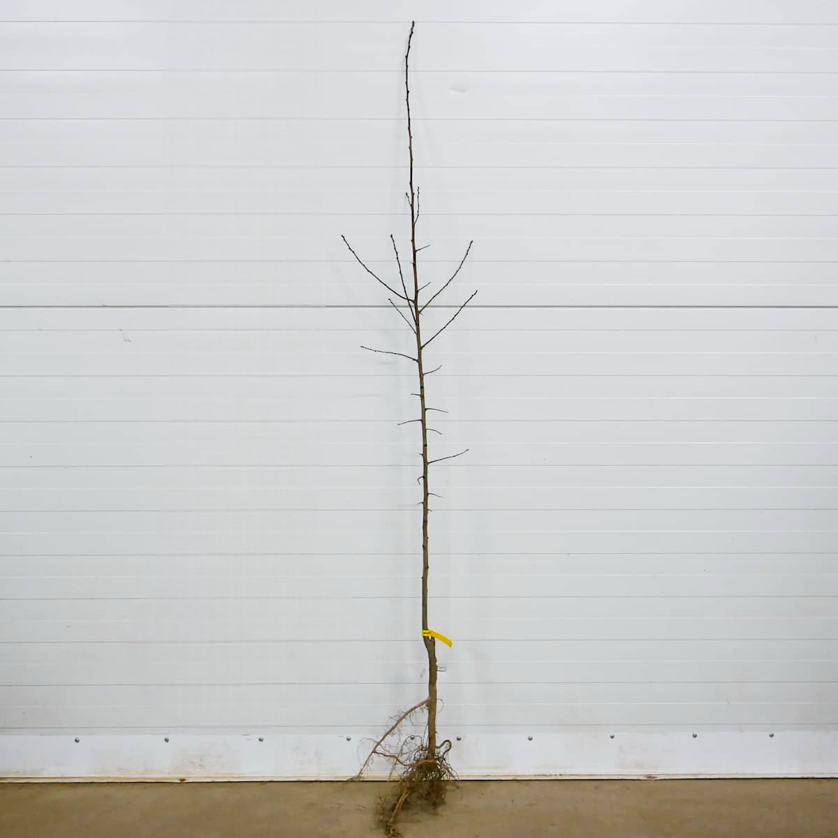 ‘Wegierka Bilá’ roste středně silně a vytváří přehlednou, lehce oválnou korunu s dobře rozloženými kosterními větvemi. Výhony jsou pružné a poměrně hustě olistěné, což v horkých dnech chrání plody před nadměrným sluncem a zároveň umožňuje světlu pronikat dovnitř koruny. Do plodnosti vstupuje brzy — první sklizeň obvykle již ve 2.–3. roce po výsadbě — a každým dalším rokem si udržuje stabilní a rovnoměrný výnos. Na polokmenových podnožích dorůstá strom 3–4 metrů, což výrazně usnadňuje péči i sklizeň. ‘Wegierka Bilá’ dobře snáší formování do vzdušné koruny založené na několika silných větvích, takže si udržuje upravený vzhled i v menších zahradách.