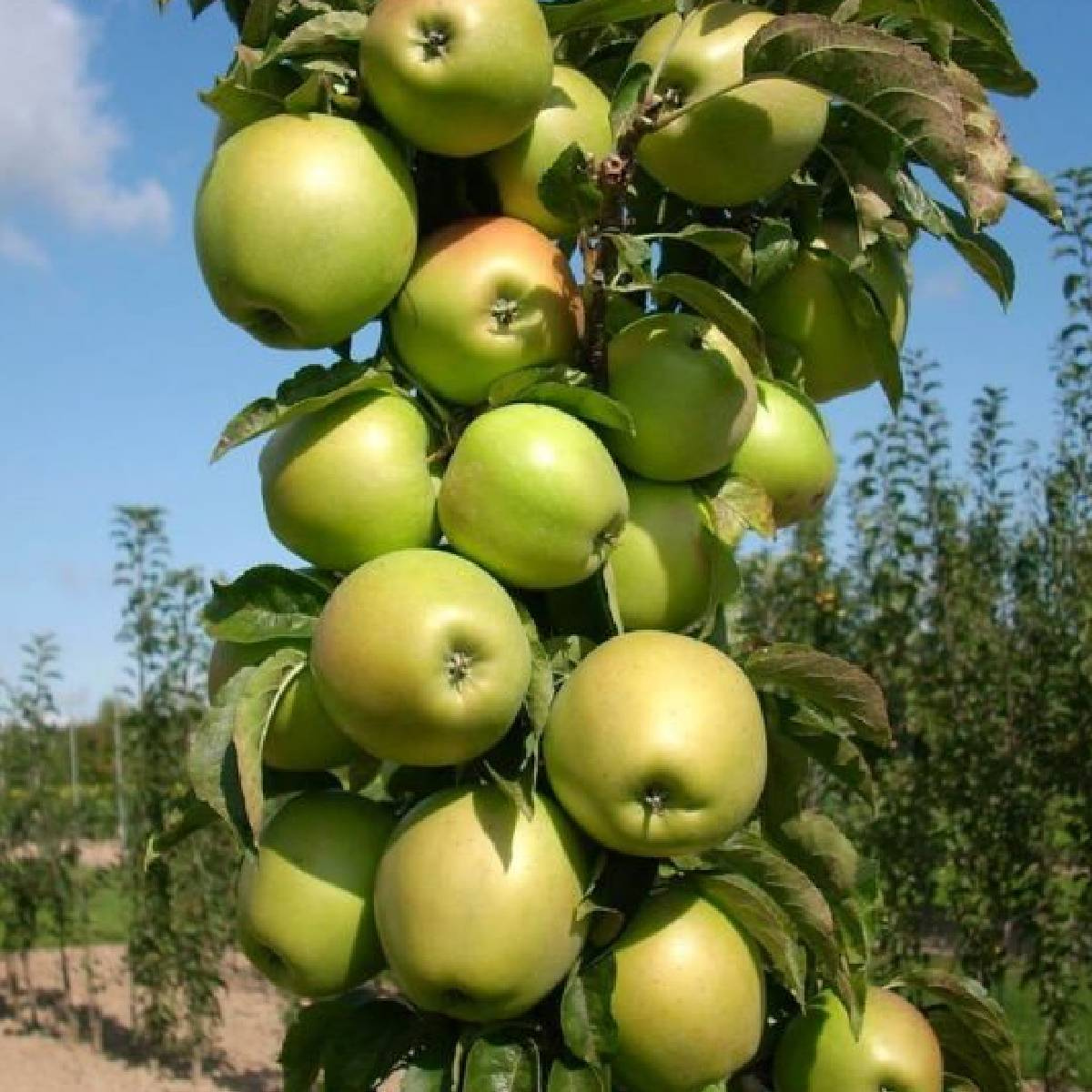 Moon Light je odrůda jabloně se sloupovitým habitem, která spojuje eleganci s praktickým využitím. Byla vytvořena pro milovníky moderních zahrad a příměstských výsadeb, kde záleží na harmonii, pořádku a přirozené kráse. Její štíhlá silueta a světle zelené listy s jemným leskem působí dekorativně po celý rok. Plody dozrávají blízko hlavního výhonu a vytvářejí efekt zlatavého sloupce, který rozzáří zahradu jako paprsek světla — odtud pochází i název odrůdy. Moon Light je ideální volbou pro ty, kteří hledají snadno pěstovatelnou, ale vizuálně atraktivní a spolehlivě plodící odrůdu, vhodnou i do menších zahrad či výsadeb typu ovocné stromy.